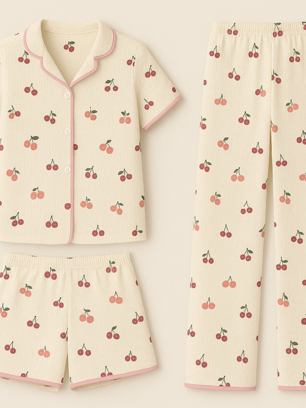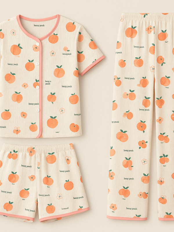 لباس خواب/راحتی طرح هلو ( سه تکه جلو باز)