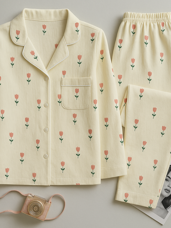لباس راحتی خواب ( طرح گل لاله جلو باز)