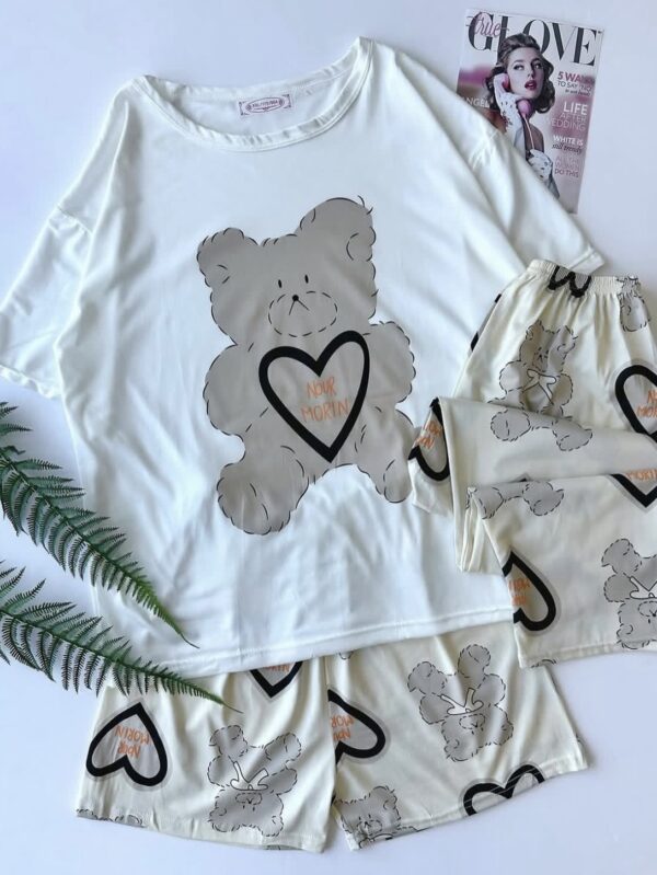 لباس راحتی خرسک (۳ تکه سفید و طوسی)