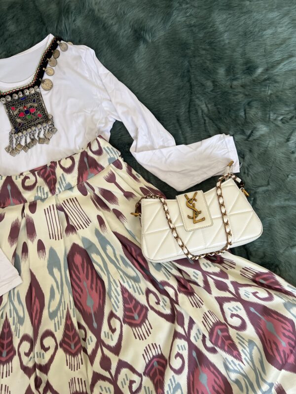 بلوز دامن تاجیکی ( گلابی + سفید)