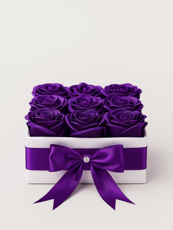 باکس گل بنفش ( ریبون) ۱۲ شاخه