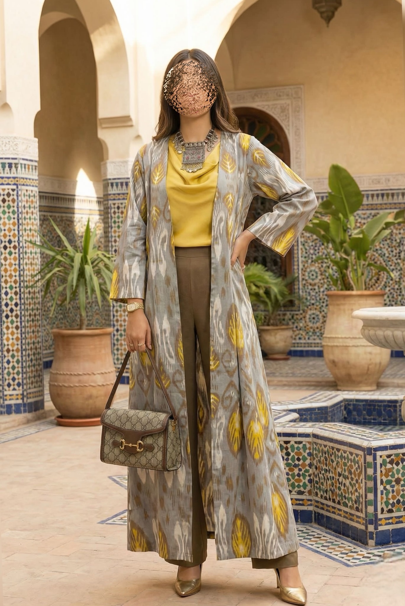 کالکشن تاجکی طرح لیمو ( سه تکه: چپن، شلوار، بلوز یخن حلقه یی)